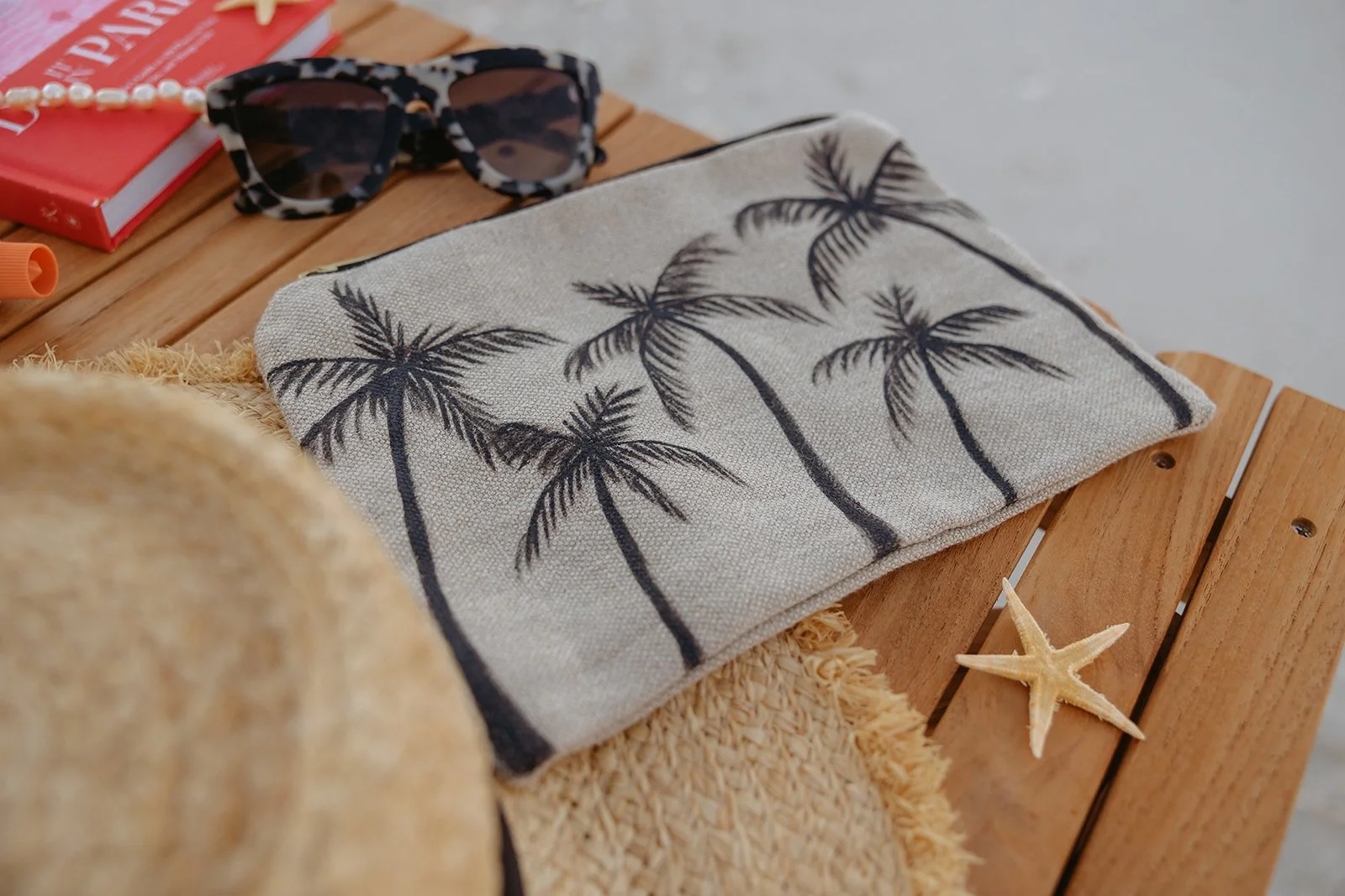 Shop Categories: Select a Category Apres Swim Beach Tote Linen Zipper Clutch Apres Swim | Beach Tote | Linen Zipper Clutch | Quick View Fleur de la Mer Gift Card from $25.00 Quick View Coco Palm Tree Zipper Clutch from $108.00 Quick View Fleur de la Mer T-shirt $75.00 Quick View Fleur de la Mer Hat $49.00 Quick View Beach Tote Hand-painted Palm Trees from $175.00